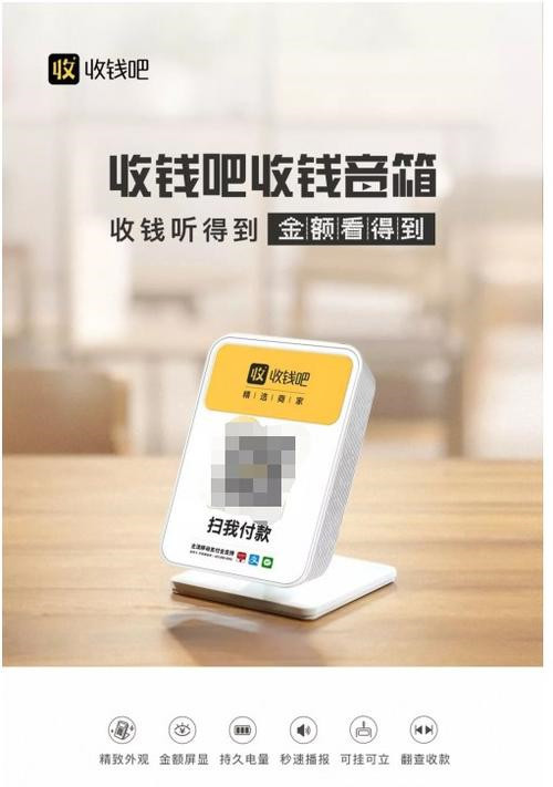 解決方案四:在智能音箱上粘貼收款碼的方式,增加了電池容量以及重播按鍵。但是仍然沒有解決:設備聯(lián)網(wǎng)操作復雜,商戶不會操作;收款碼和交易播報需要分開激活。商戶需要更換收款賬戶,需要分開解綁收款碼和智能音箱,如果僅解綁了一個收款碼或智能音箱,整個設備都不能正常工作,且存在安全風險;需要WIFI/手機熱點環(huán)境的問題。而且?guī)硇碌膯栴},這種音箱與碼牌二合一的設備是屬于前臺設備,需要展現(xiàn)給客戶,真實的使用場景下部分商戶是沒有收銀臺的,無法擺放。此類設備都僅支付擺放,不支持懸掛,部分商戶無法正常使用它的功能。另外這種付款碼是貼紙,容易被污損、破壞。