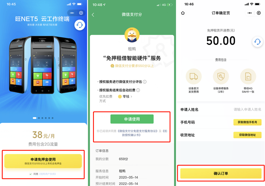 微信POS機(jī)信用免押系統(tǒng)是我們在2020年全新推出的一款提供免押租借智能硬件服務(wù)的系統(tǒng)。只要用戶的支付分在550分及以上,就可以通過微信進(jìn)行線上租賃。