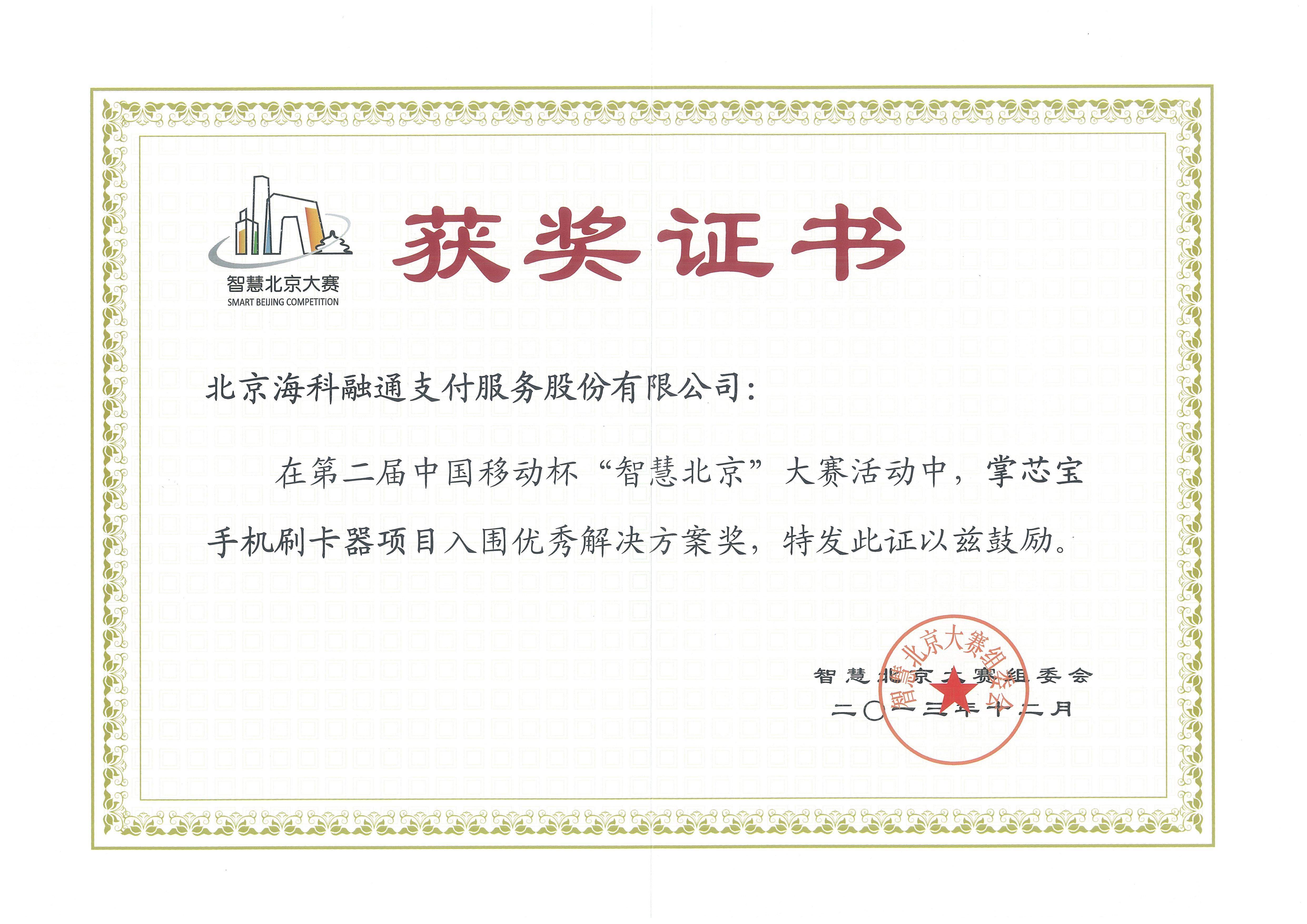 移動杯“智慧北京”大賽優(yōu)秀解決方案獎