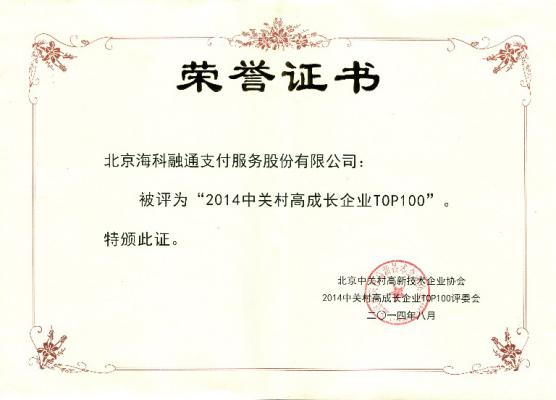 公司成為“中關(guān)村高成長企業(yè)TOP100”企業(yè)