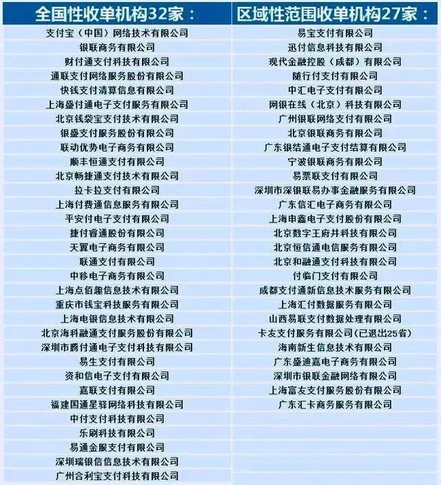 支付牌照就不用說了,在名單內(nèi)部的都是有支付牌照的。